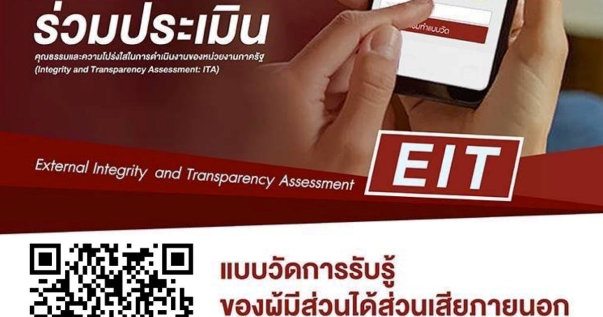 ขอเชิญประชาชนที่มาติดต่อราชการ ร่วมทำการประเมินคุณธรรมและความโปร่งใสในการดำเนินงานของหน่วยงานภาครัฐ (Integrity and Transparency Assessment: ITA)
