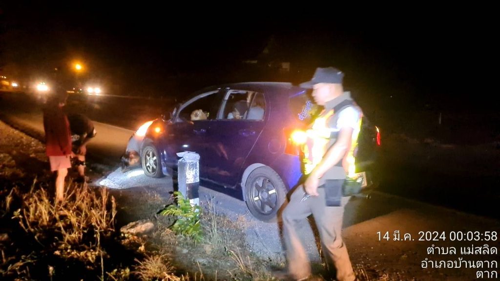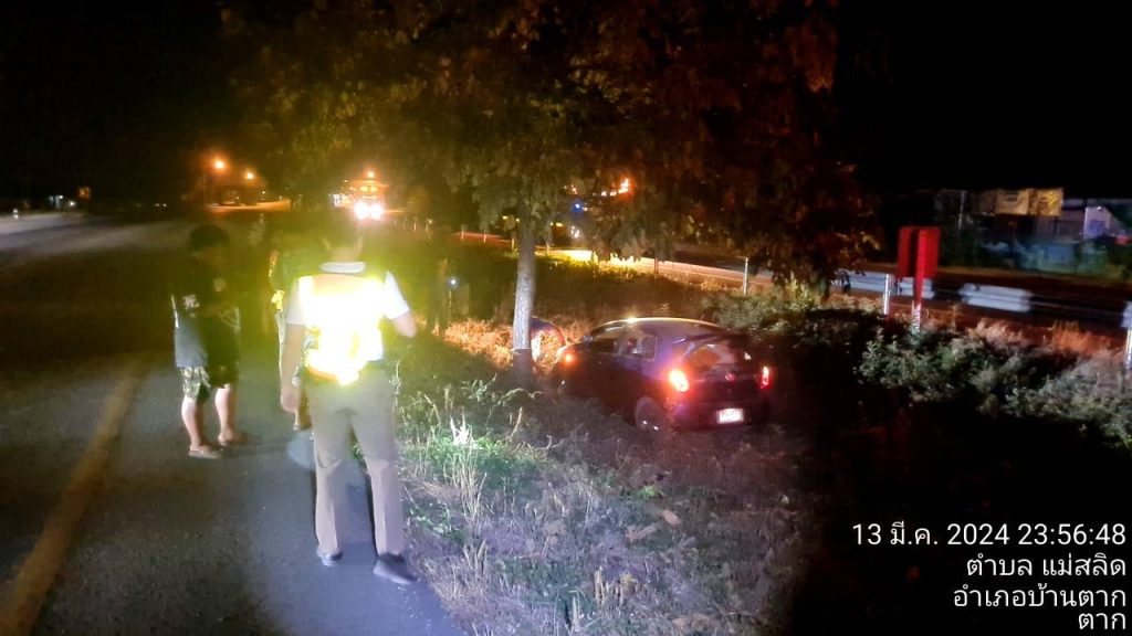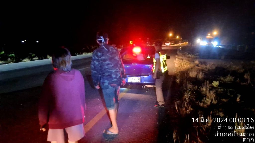 ช่วยเหลือประชาชน 13 มีนาคม 2567 โดย admin / ข่าวกิจกรรม เมื่อวันที่ 13 มี.ค. 67 เวลาประมาณ 23.50น. ร.ต.อ.กำพล โชติกะคาม รอง.สวป.สภ.แม่สลิด ร้อยเวร20 พร้อมสายตรวจรถยนต์ ได้รับแจ้ง เหตุจากศูนย์วิทยุ 191 สภ. แม่สลิด เหตุ ว.40 รถลงเกาะกลางถนน พบรถเก๋งยี่ห้อ โตโยต้า ทะเบียน กร 9173 ลำปาง ผู้ขับขี่ นาย ภานุมาศ ดอนดีไพร อายุ38 ปี เหตุเกิดที่ กม. 554 (ขาล่อง) หมู่ที่ 10 ต.เเม่สลิด อ.บ้านตาก จ.ตาก จึงได้ช่วยเหลือนำรถขึ้นข้างทางและเปลี่ยนยางรถยนต์และสามารถเดินทางต่อไปได้ Facebook iconFacebookTwitter iconTwitterLINE iconLine