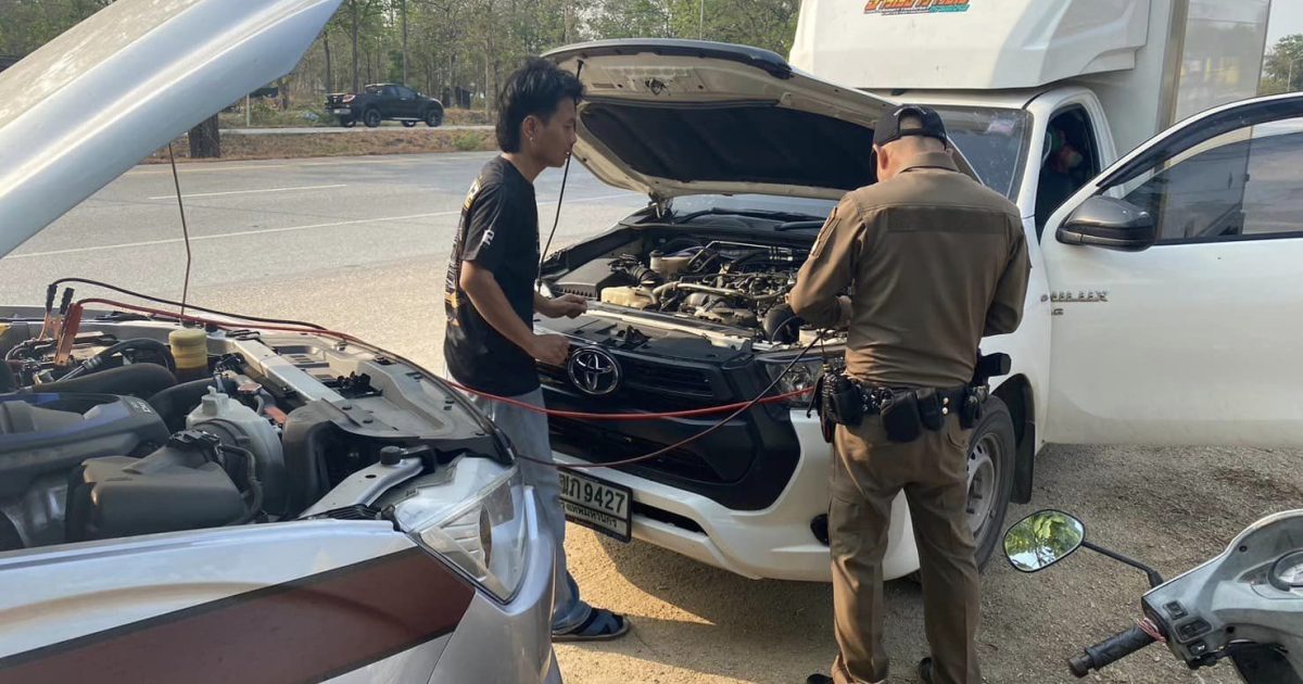 เวลาประมาณ 08.00 น. ร.ต.อ.กำพล โชติกะคาม รอง.สวป.สภ.แม่สลิด ร้อยเวร20 พร้อมสายตรวจรถยนต์ ได้รับแจ้งเหตุ191 ผ่านศูนย์วิทยุสื่อสาร สภ.แม่สลิดเหตุ รถแบตเตอรี่หมด หน้า อบต.แม่สลิด (ขาขึ้น) สายตรวจเข้าไปตรวจสอบพบ รถบรรทุกแป้งพิซซ่า ป้ายทะเบียน 3ฒภ 9427 กทม. ผู้ขับขี่ นายทินกร ในวี่ อายุ 24ปี บ้านเลขที่ 381/ช ม.10 ต.หนองบัว อ.ไชยปราการ จ.เชียงใหม่ สายตรวจรถยนต์ได้เข้าไปให้ความช่วยเหลือในการพ่วงแบตเตอรี่เป็นที่เรียบร้อย