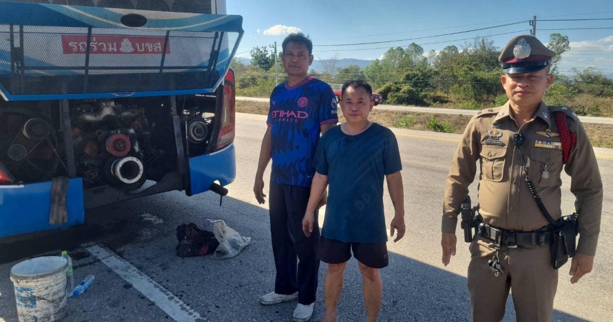 เมื่อวันที่ 2 ก.พ. 67 เมื่อเวลาประมาณ 15.00 น. ร.ต.อ.กำพล โชติกะคาม รอง สวป.สภ.แม่สลิด (ร้อยเวร20 ) พร้อมด้วยชุดสายตรวจรถยนต์ร่วมจราจร สภ.แม่สลิด ได้รับแจ้งจากศูนย์วิทยุ สภ.แม่สลิด มีรถบัสโดยสาร ว.18 ขอความช่วยเหลือ บนถนนพหลโยธิน (ขาล่อง) บริเวณตรงข้ามอนามัยบ้านแม่สลิด ม.3 ต.แม่สลิด อ.บ้านตาก จ.ตาก จึงได้ไปตรวจสอบพบรถบัสโดยสาร จอดเสียอยู่บนไหล่ทางช่างกำลังดำเนินการซ่อมไม่กีดขวางทางจราจร เจ้าหน้าที่สายตรวจจึงได้วางกรวย และอำนวยความสะดวกการจราจร เพื่อป้องกันการเกิดอุบัติเหตุ