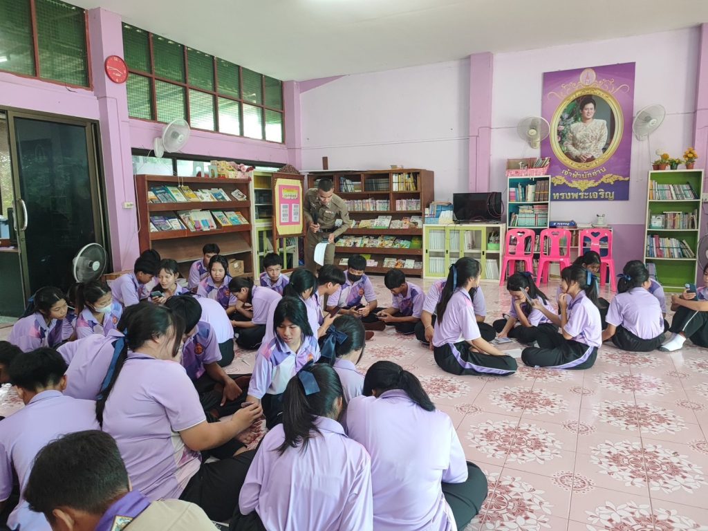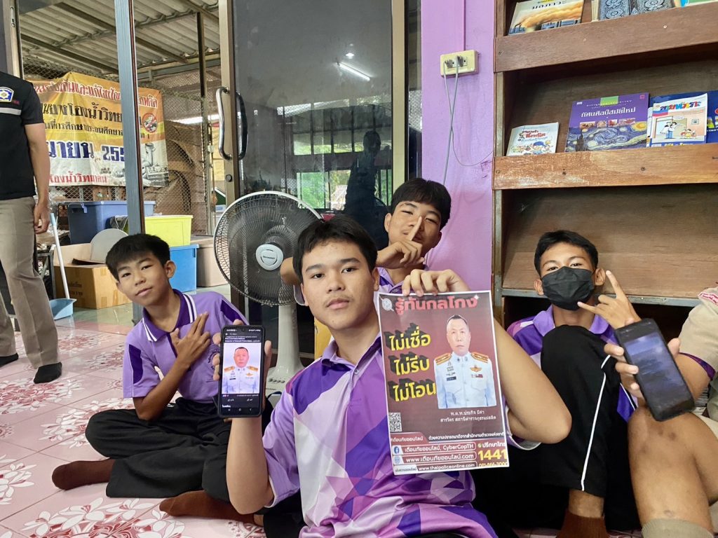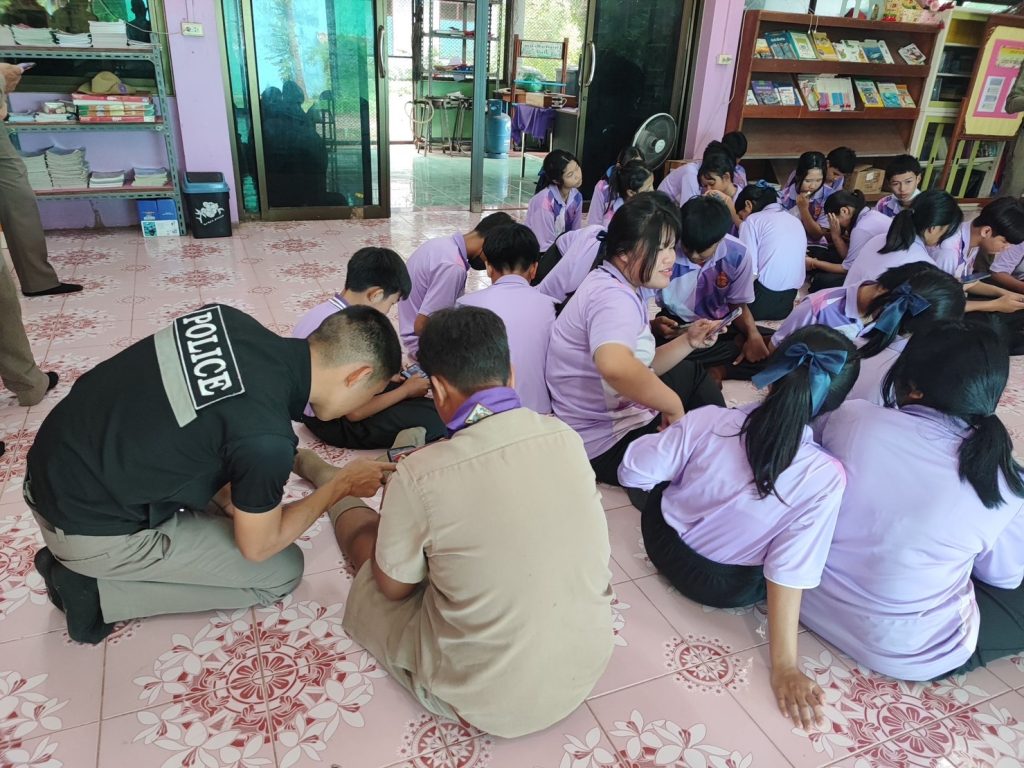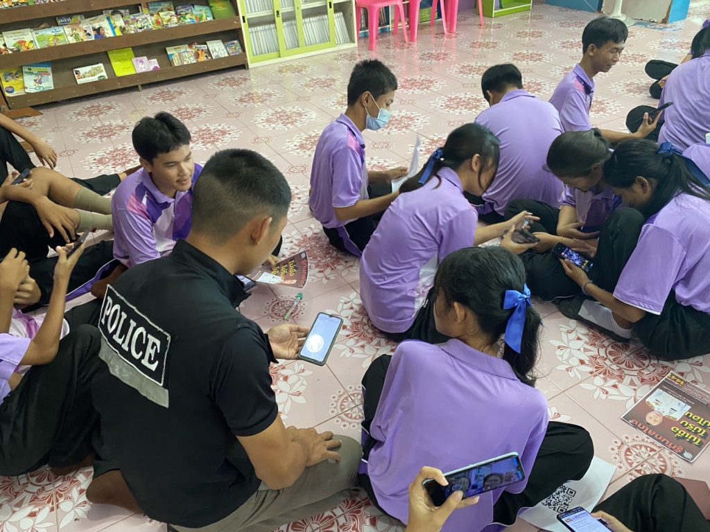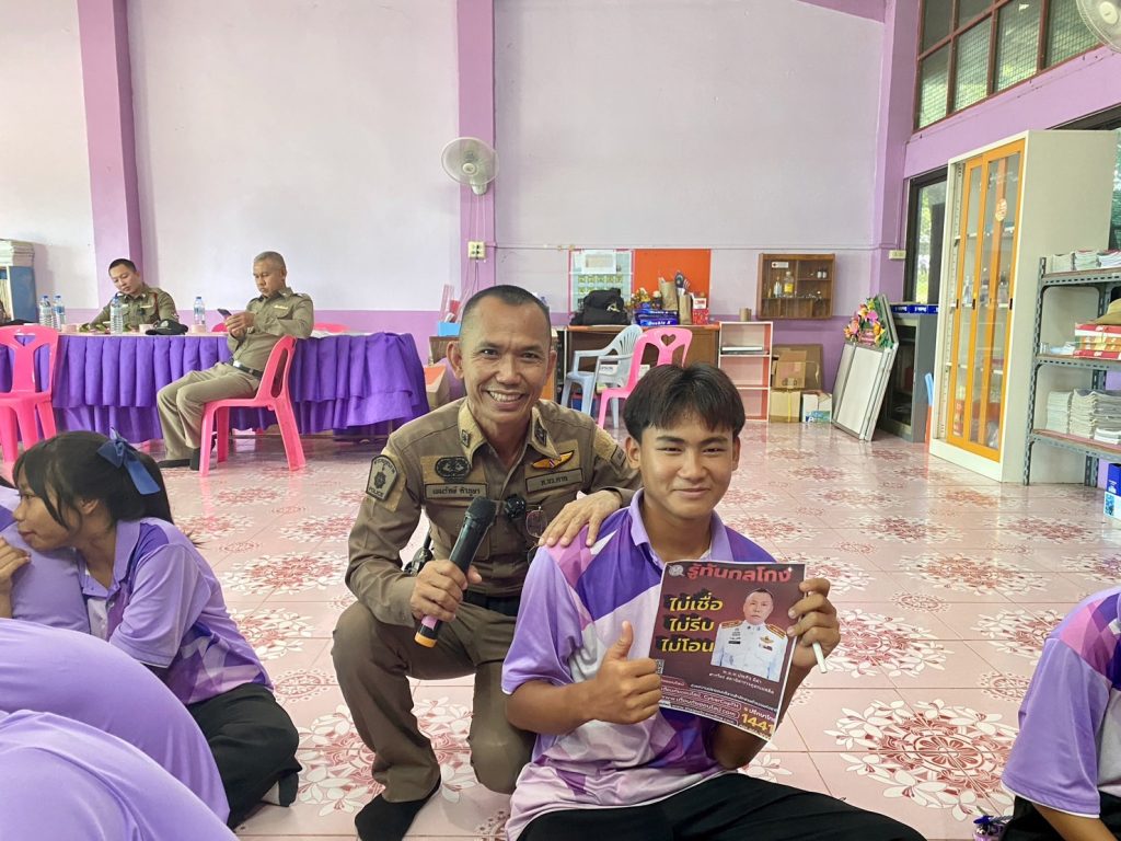 วันพุธ ที่ 6 กันยายน 2566 เวลาประมาณ 09.00-11.30 น. พ.ต.ท. ประกิจ มีคำ สารวัตรสถานีตำรวจภูธรแม่สลิด มอบหมายให้ ร.ต.อ.กำพล โชติกะคาม รอง สวป. สภ.แม่สลิด / ร้อยเวร 20 พร้อมสายตรวจรถยนต์ และเจ้าหน้าที่ Vaccinated cyber (ครู ข.)ประชาสัมพันธ์ดำเนินการโครงการ “ผนึกกำลังร่วมใจ ต้านภัยไซเบอร์ ไม่เชื่อ ไม่รีบ ไม่โอน รู้ทันกลโกง “ และร่วมทำแบบทดสอบ 40 ข้อ ให้กับนักเรียน ชั้น ม.1 – ม.3 โรงเรียนยางโองน้ำวิทยาคม โดยมีนักเรียนเข้าร่วมจำนวน 30 คน ณ โรงเรียนยางโองน้ำวิทยาคม ต.แม่สลิด อ.บ้านตาก 6 กันยายน 2566 โดย admin / ข่าวกิจกรรม Facebook iconFacebookTwitter iconTwitterLINE iconLine