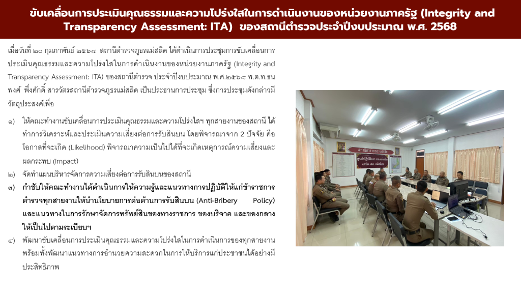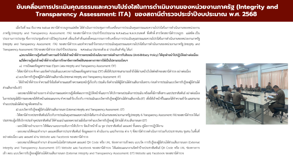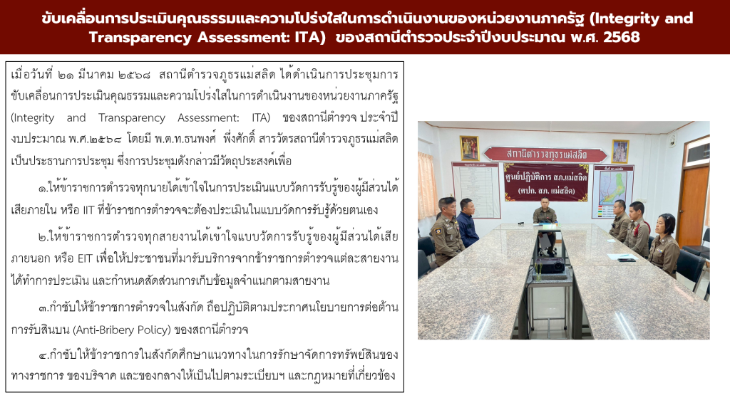 ประชุมการขับเคลื่อนการประเมินคุณธรรมและความโปร่งใสในการดำเนินงานของหน่วยงานภาครัฐ